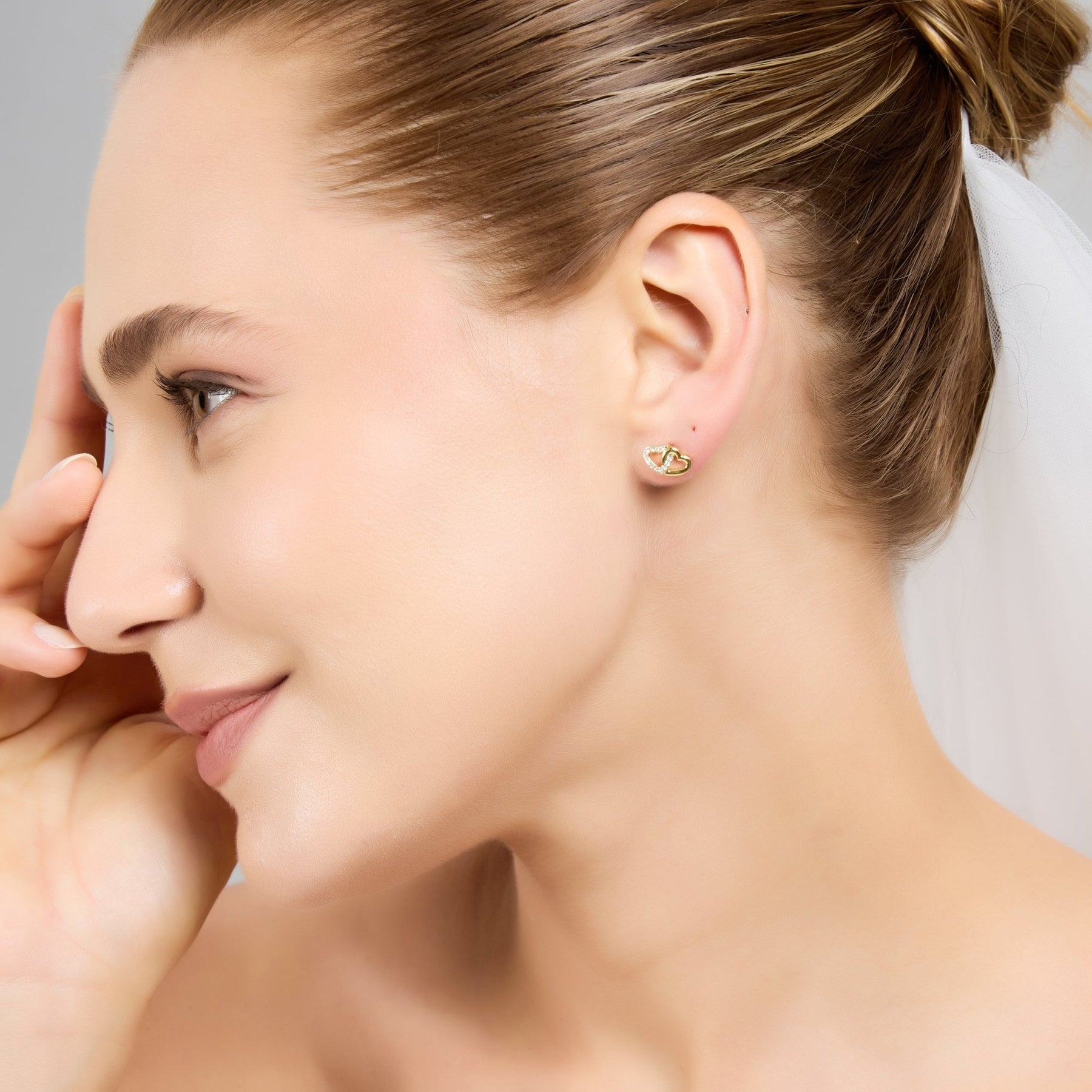 Gold Plated Heart Link Bridal Earrings Created with Zircondia® Crystals