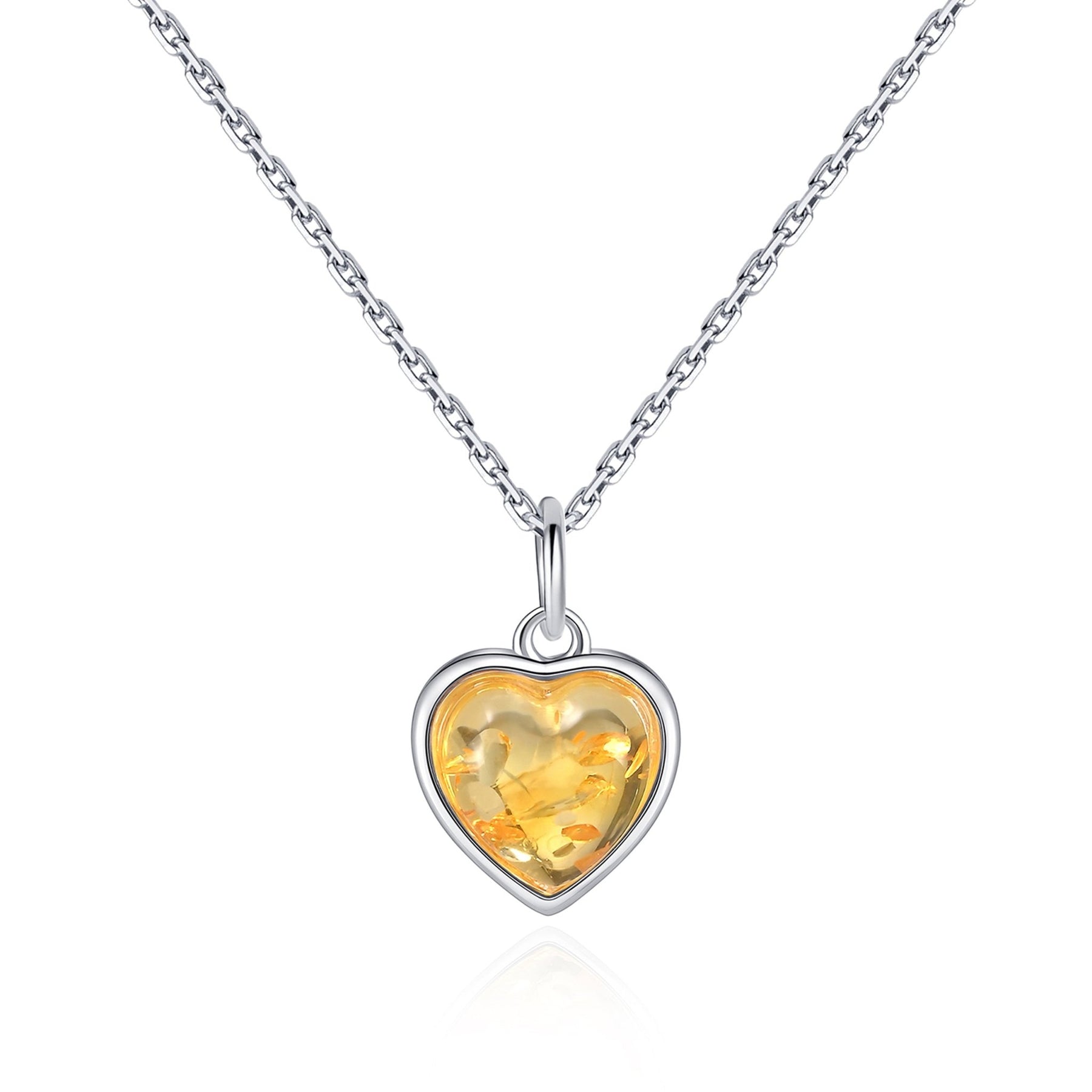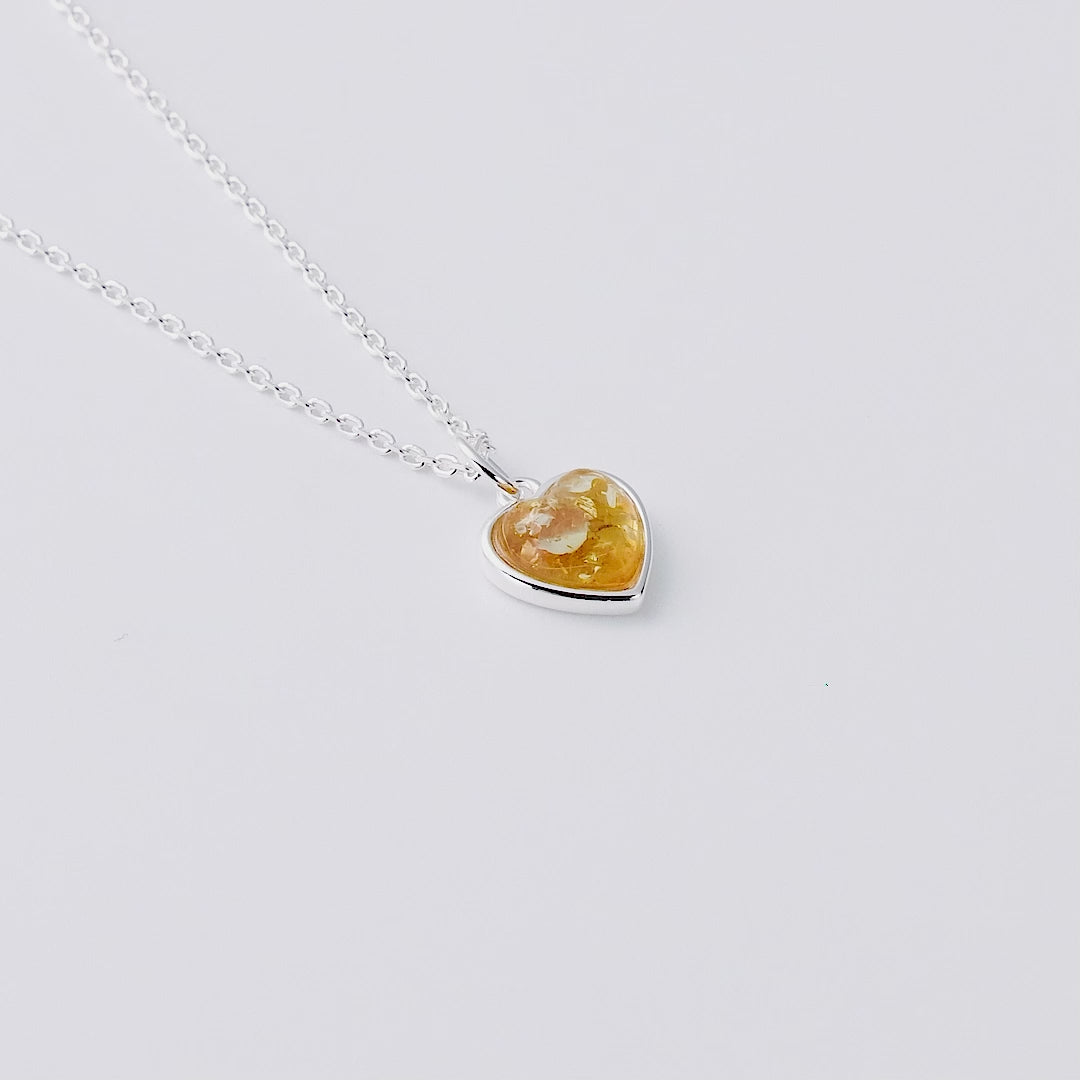 Sterling Silver Amber Heart Necklace