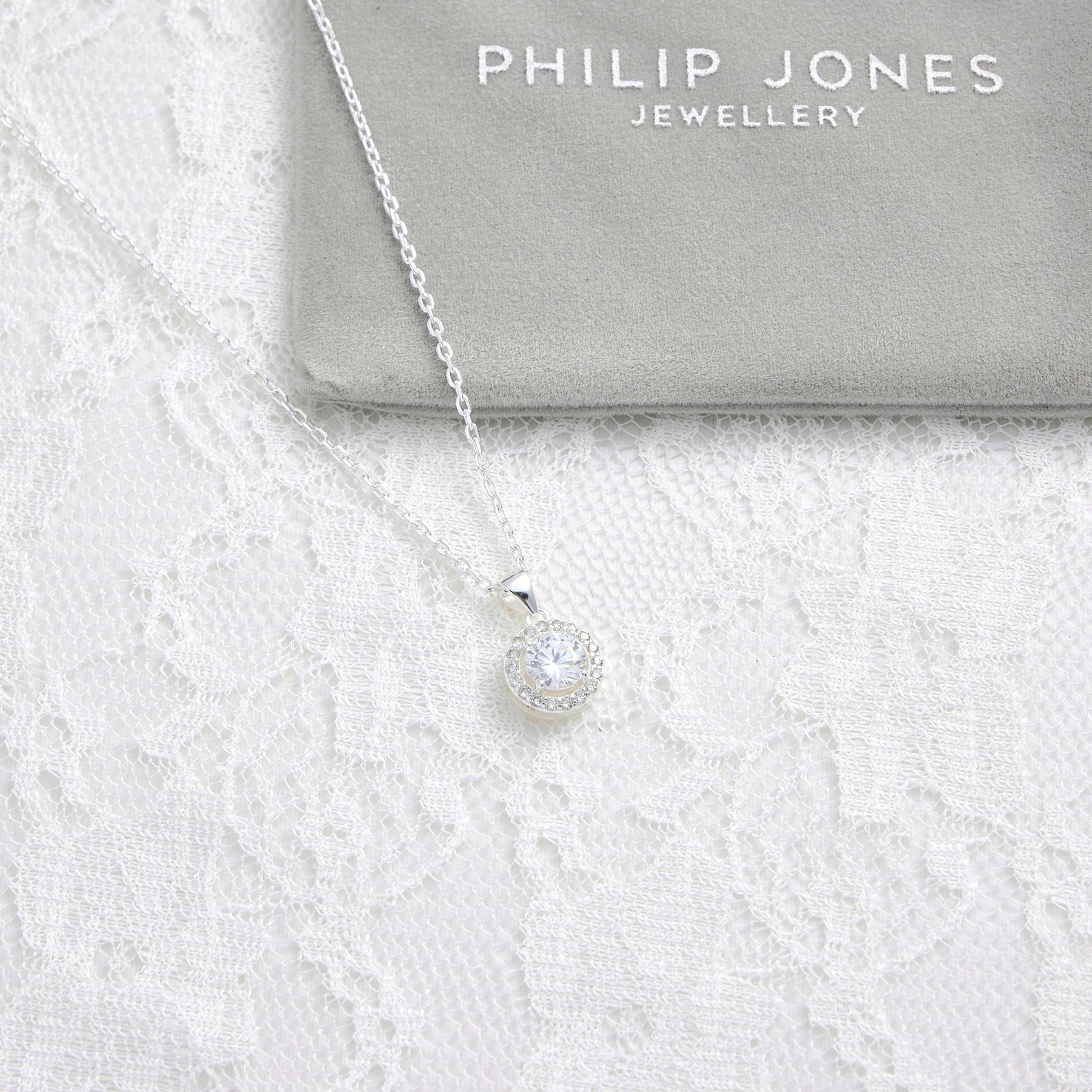 Sterling Silver Halo Necklace Created with Zircondia® Crystals - Philip Jones Jewellery