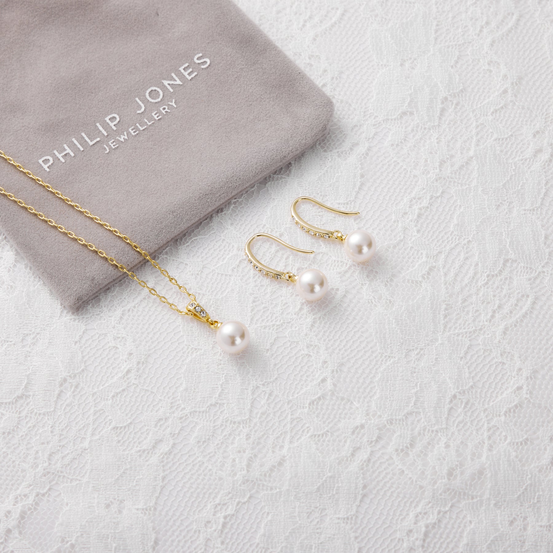 Gold Plated Pearl Drop Bridal Set Created with Zircondia® Crystals