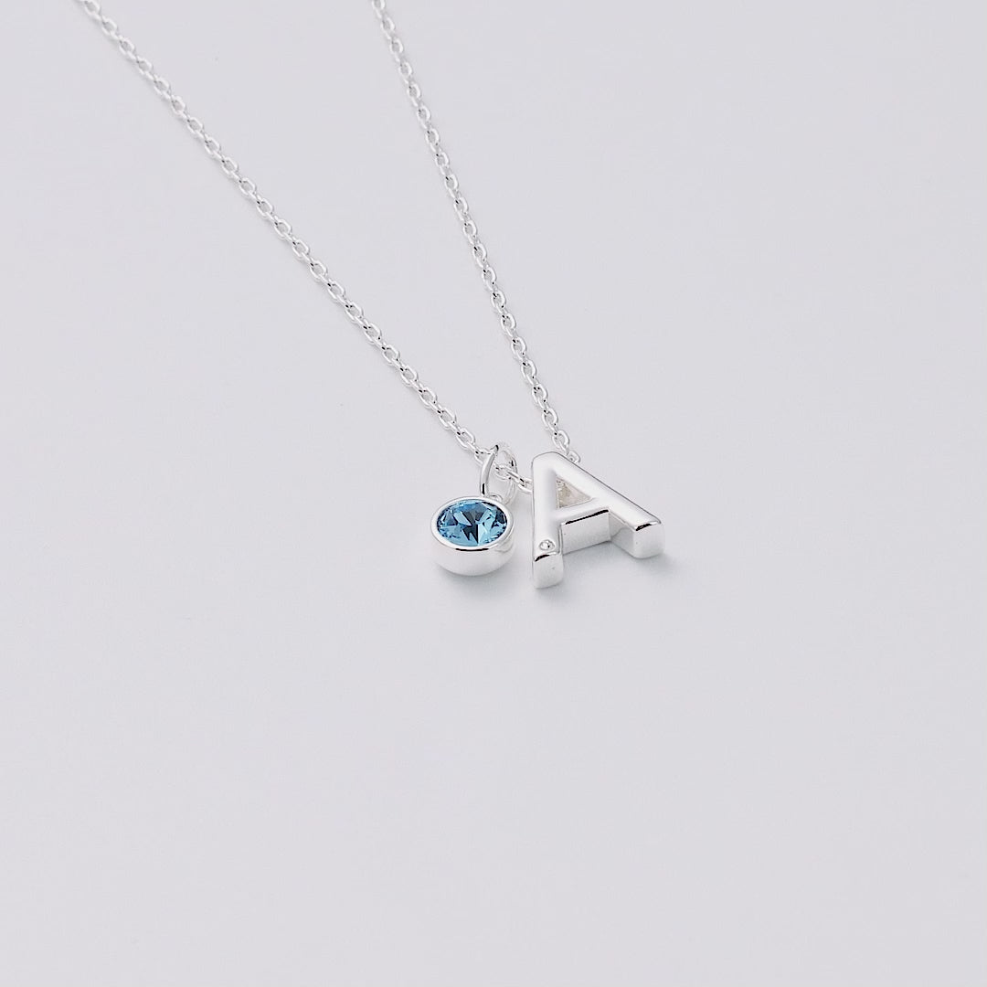 Initial A Necklace with Birthstone Charm Created with Zircondia® Crystals - Philip Jones Jewellery