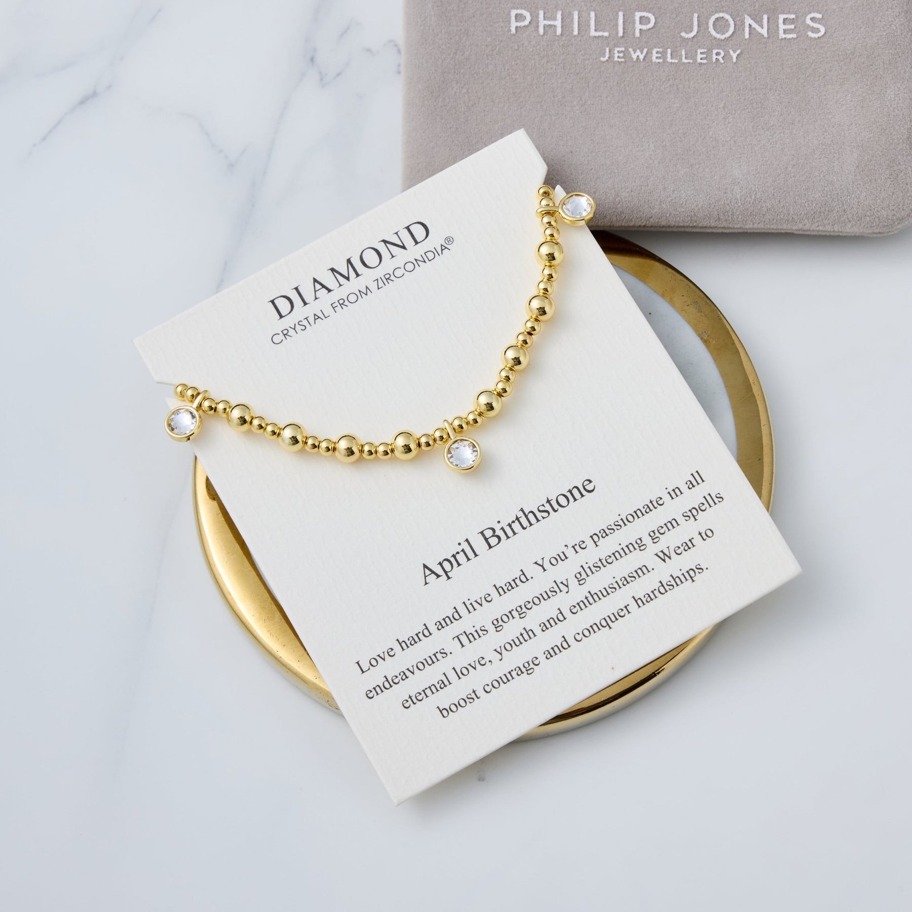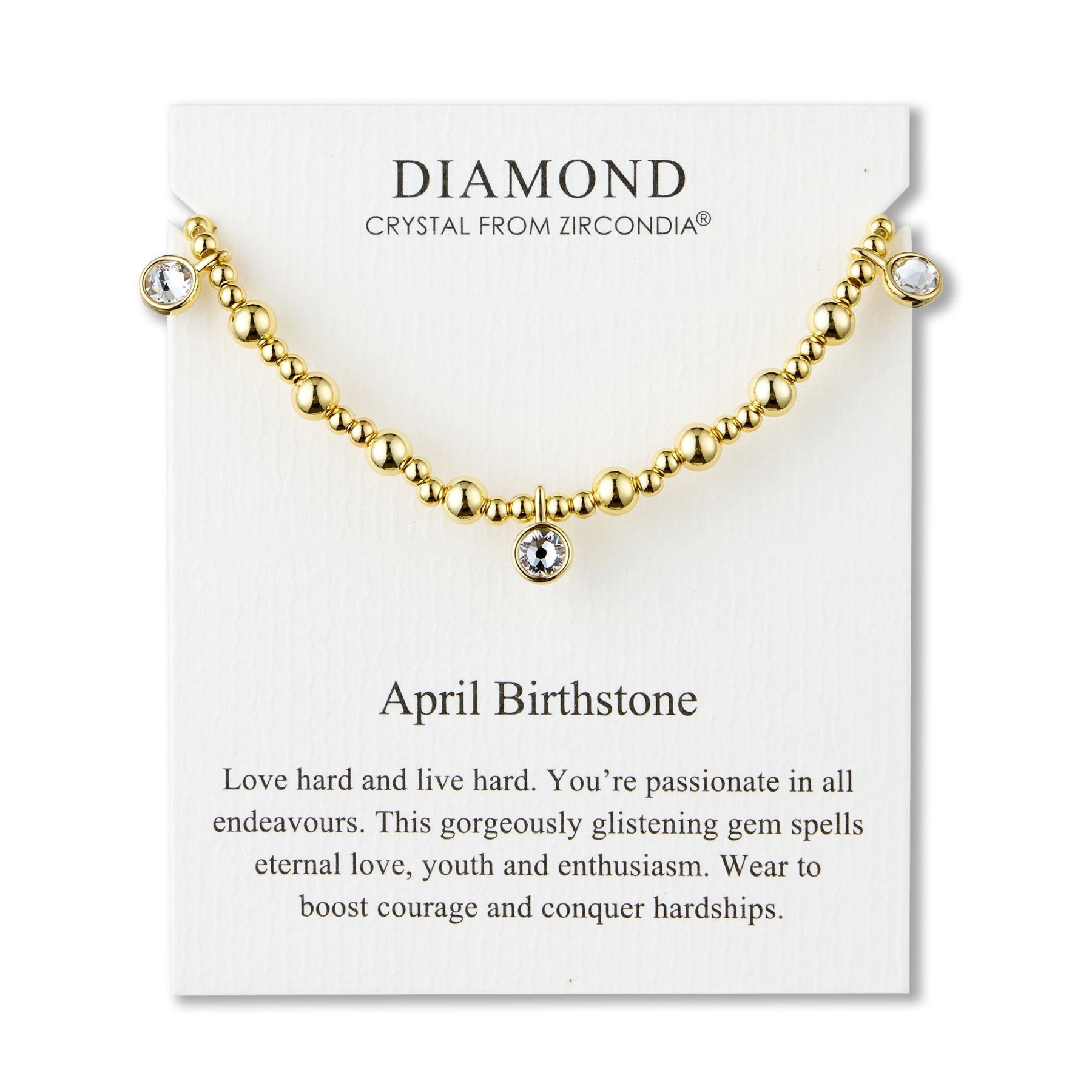 18k Gold Plated April (Diamond) Birthstone Stretch Charm Bracelet with Quote Card