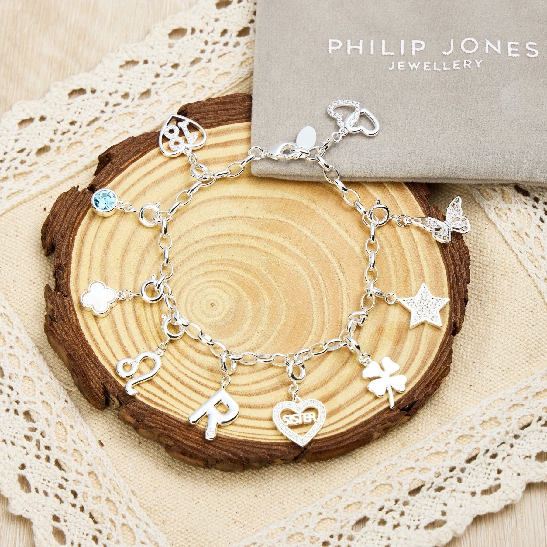Silver Plated Link Chain Bracelet with Choice of Charms - Philip Jones Jewellery