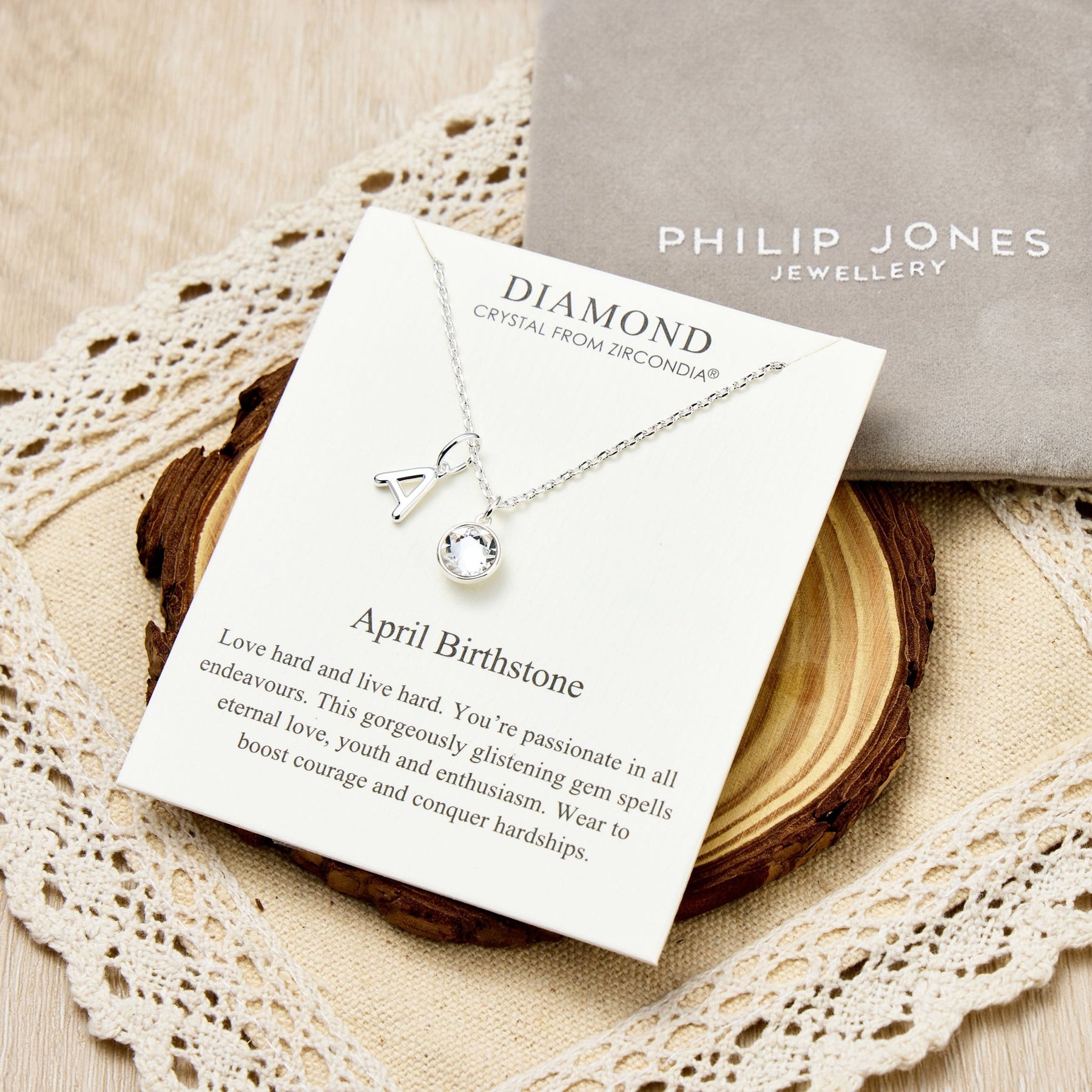 April (Diamond) Birthstone Necklace Created with Zircondia® Crystals - Philip Jones Jewellery
