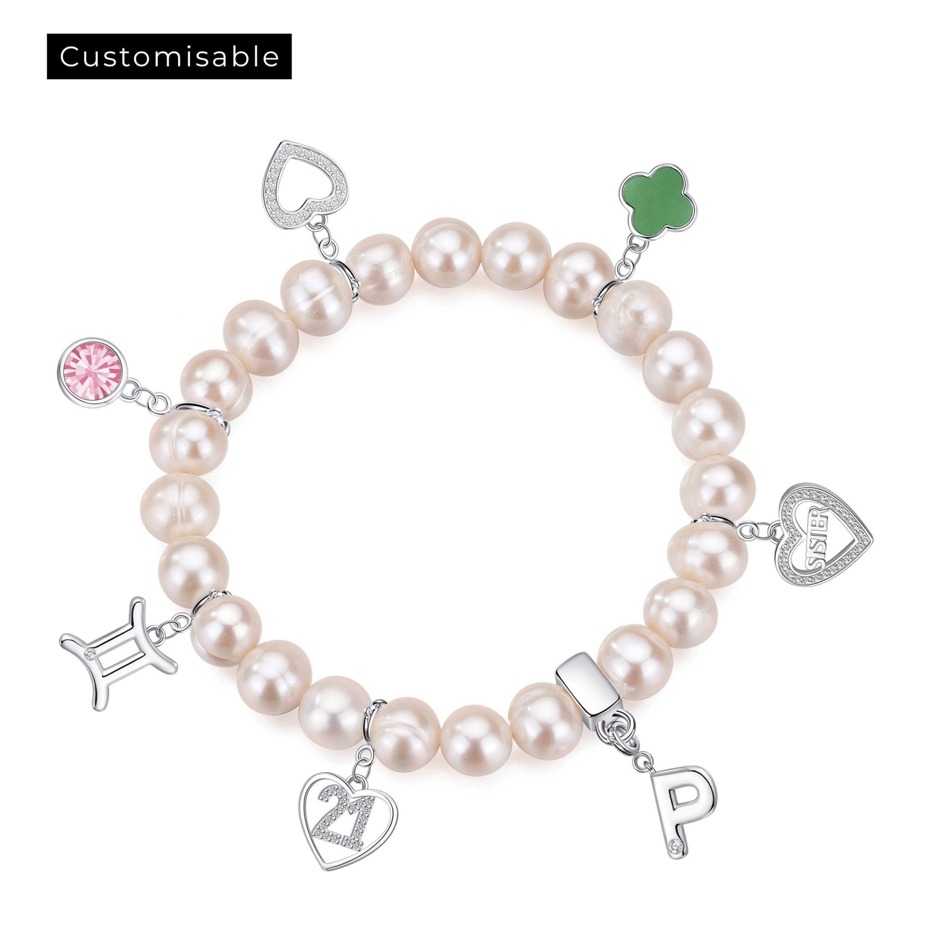 Freshwater Baroque Pearl Stretch Bracelet with Choice of Charms - Philip Jones Jewellery