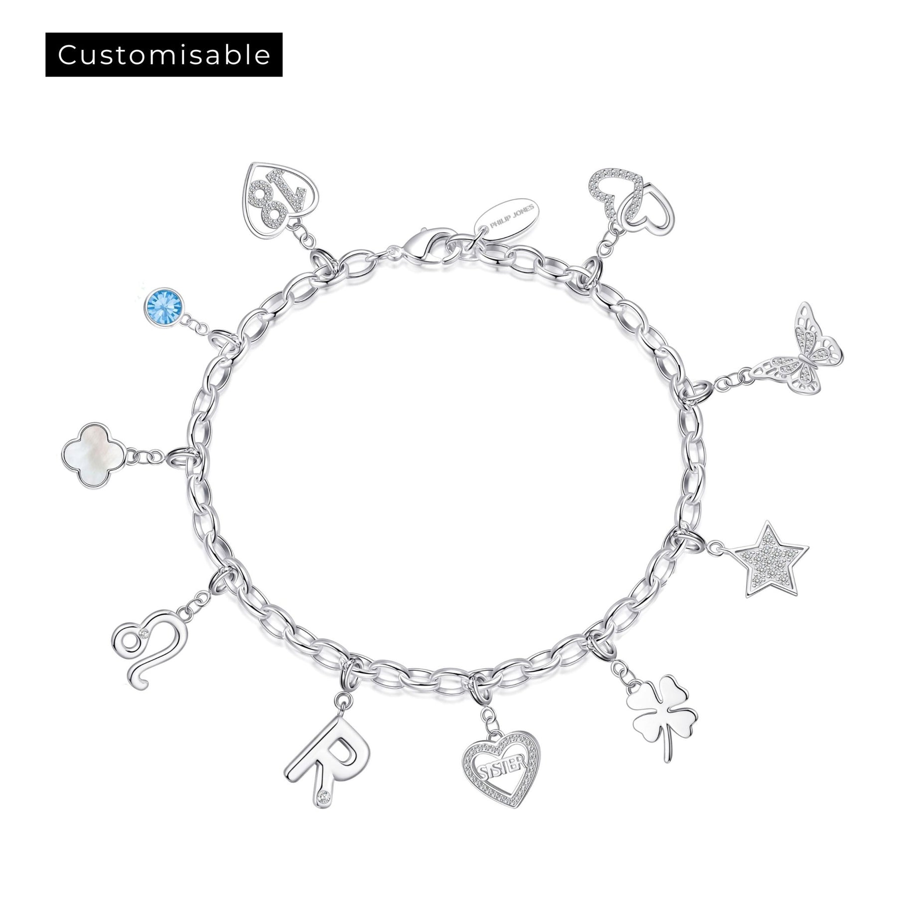 Silver Plated Link Chain Bracelet with Choice of Charms - Philip Jones Jewellery