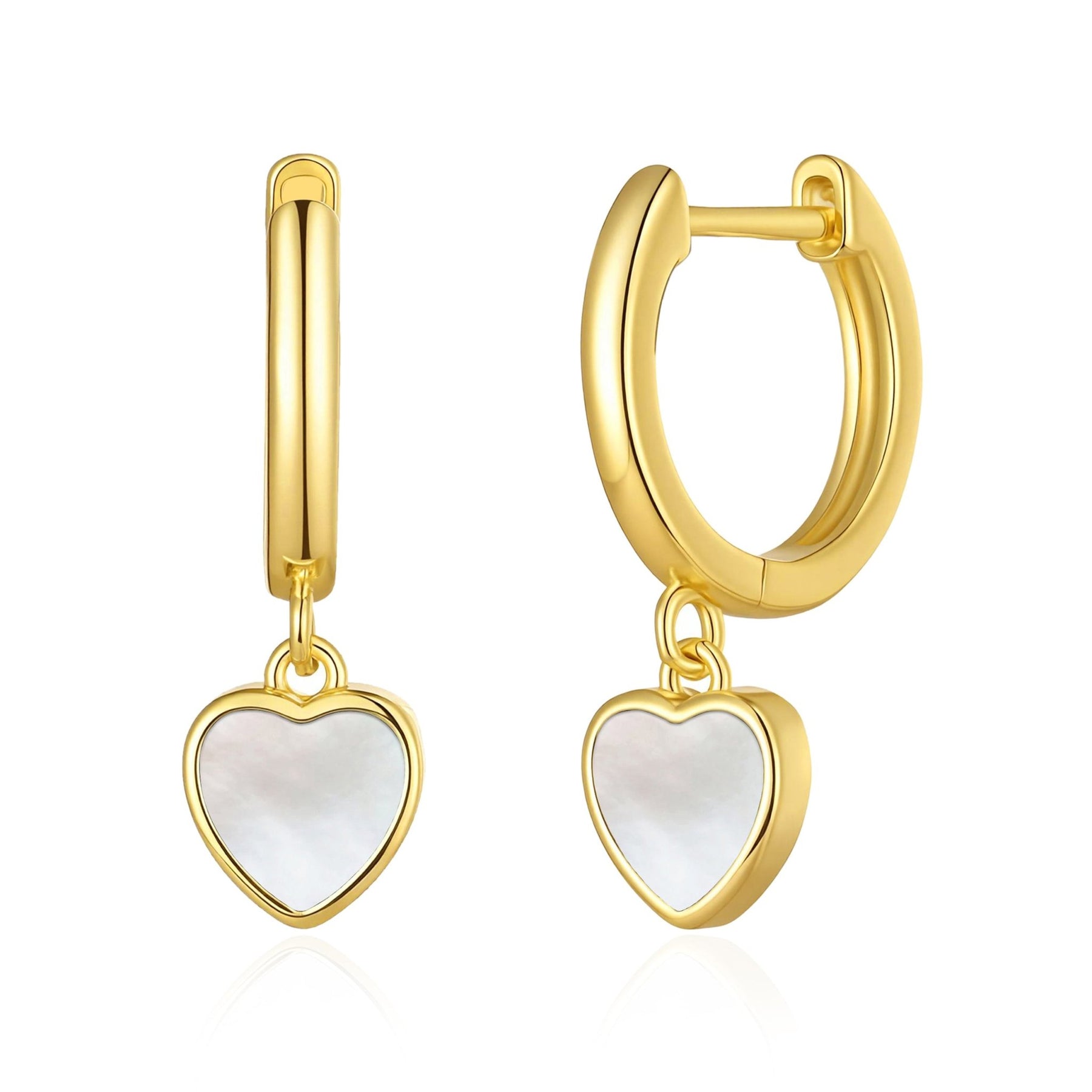 18k Gold Plated Mother of Pearl Gemstone Heart Charm Hoop Earrings - Philip Jones Jewellery