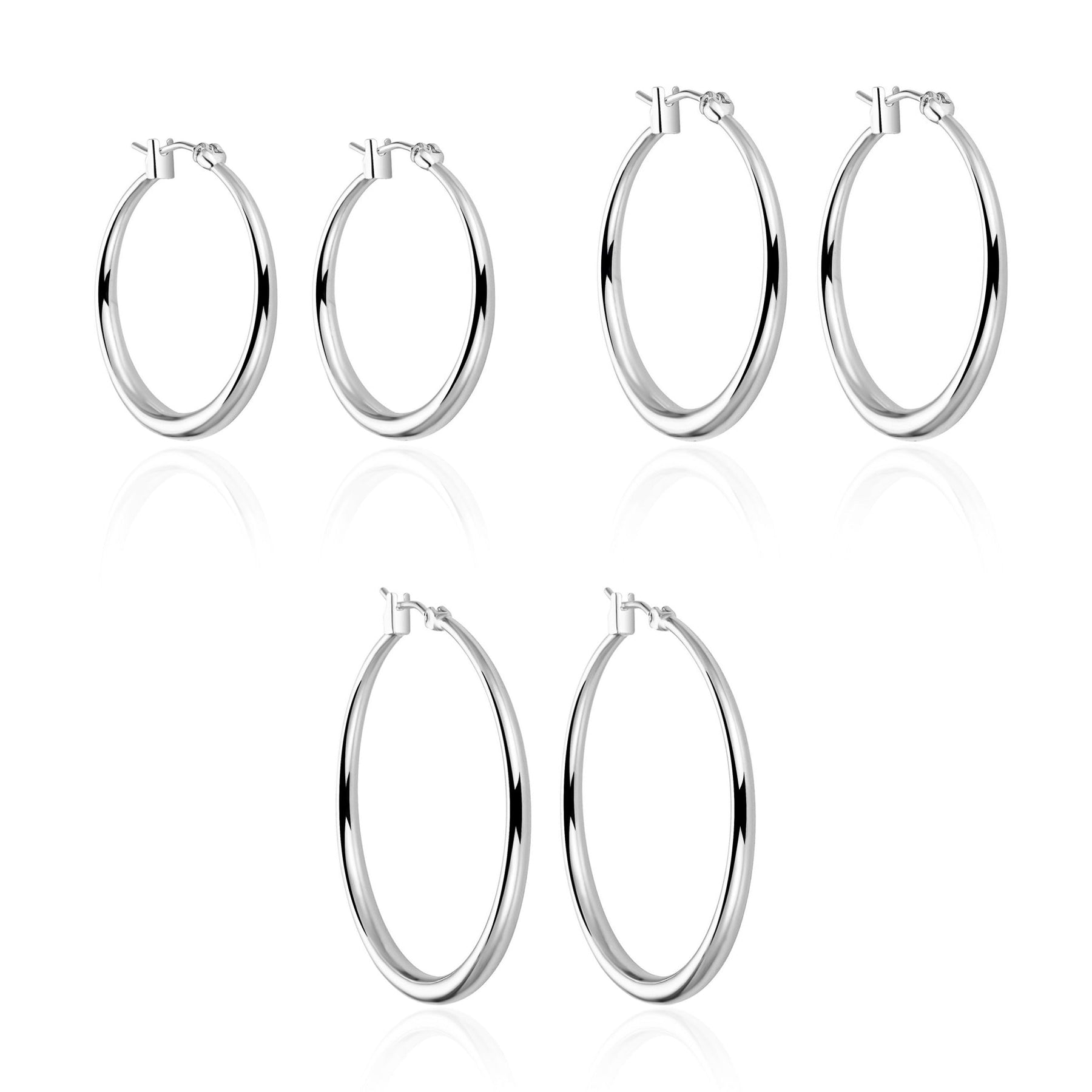 Discover effortless style with this stunning three-piece hoop earring collection from Philip Jones. Featuring silver plated brass with a radiant high polished finish, each pair combines hypoallergenic comfort with lasting quality. The 20mm, 30mm, and 40mm sizes offer versatile styling options for any mood or occasion. Secure lever back closures and robust 3mm thickness ensure reliable wear. Presented in an elegant gift pouch, these earrings make an exceptional present or personal indulgence.