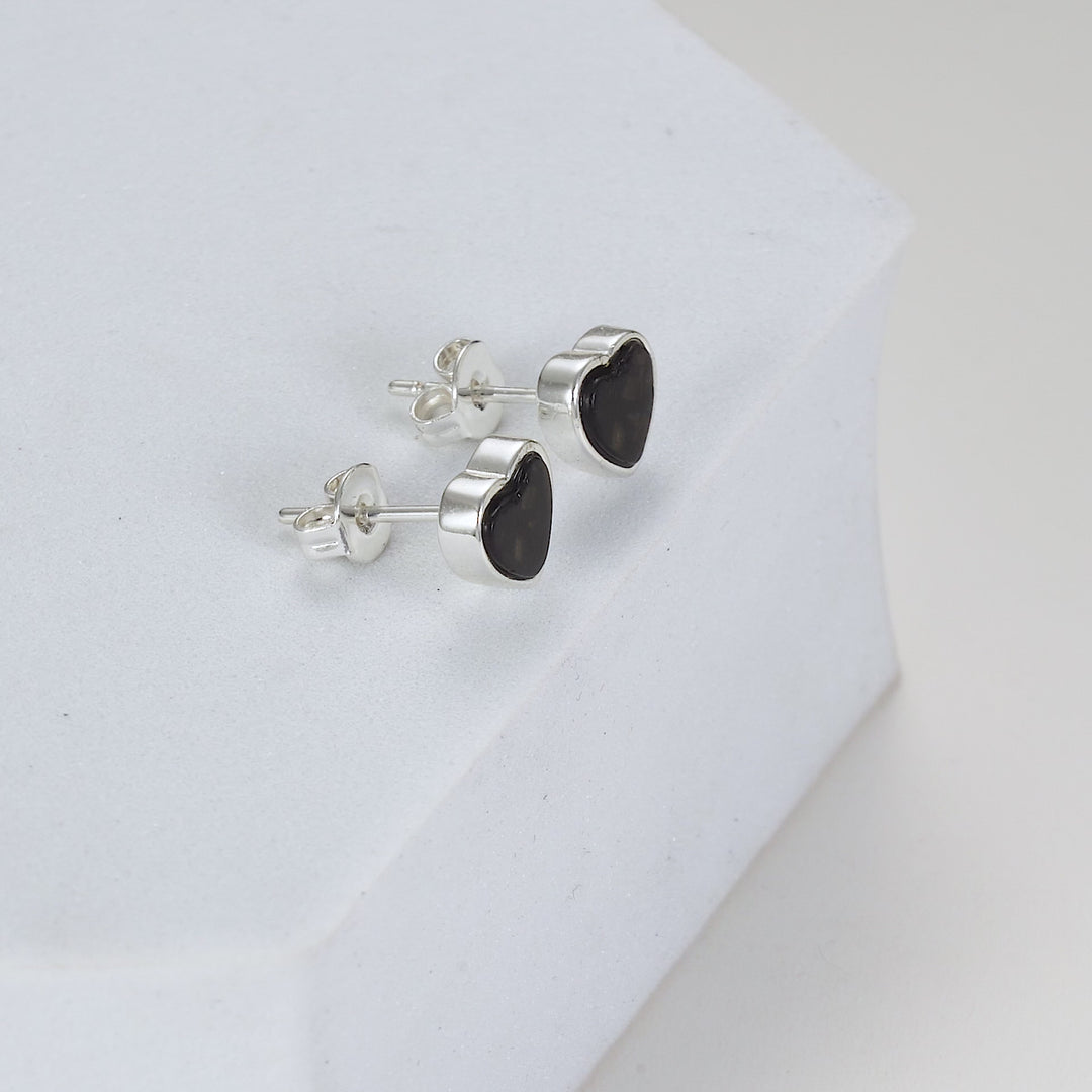 Black Onyx Heart Stud Earrings