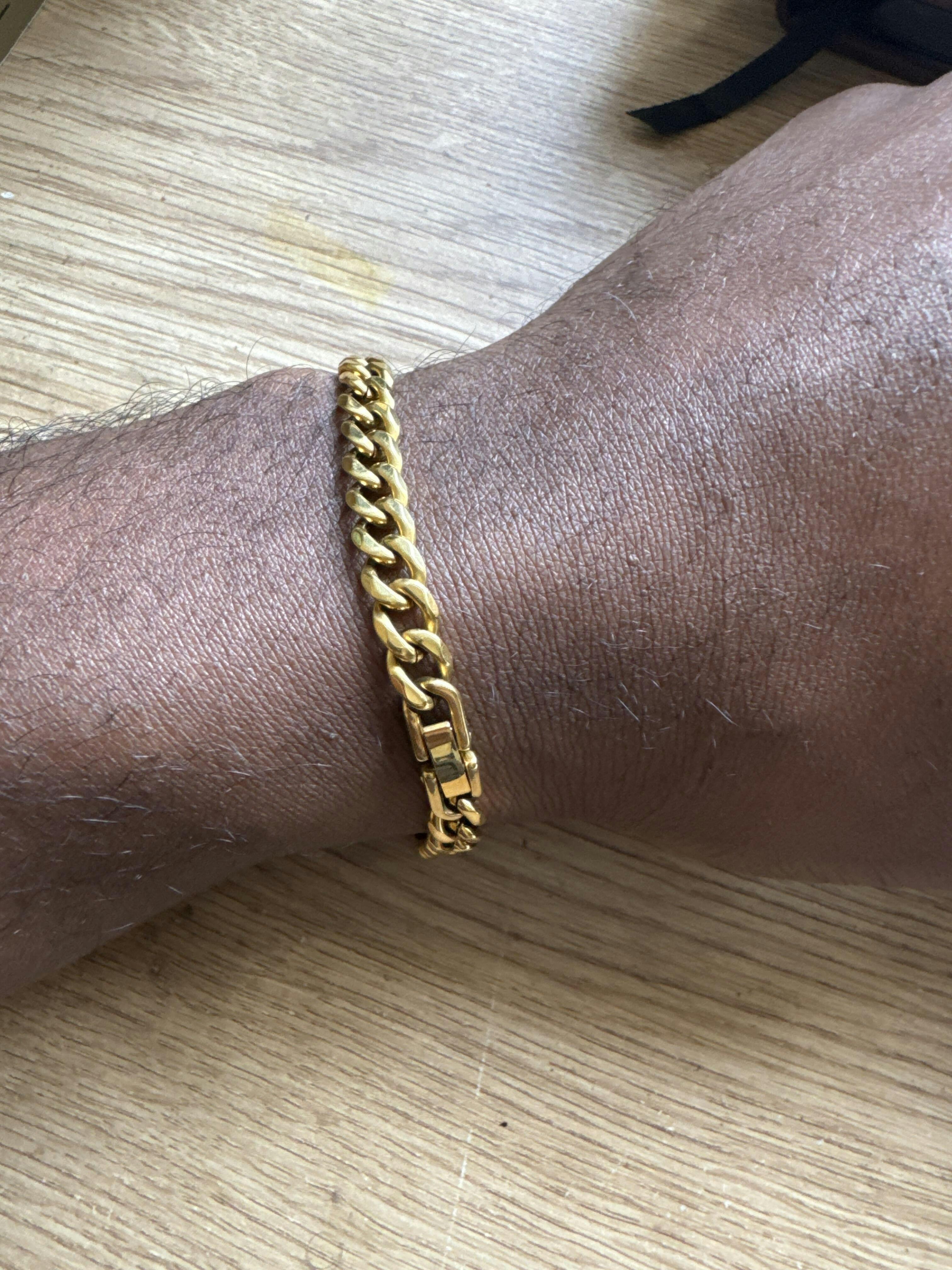Men's 6mm Gold Plated Stainless Steel 7.5-8.5 Inch Curb Chain Bracelet Video