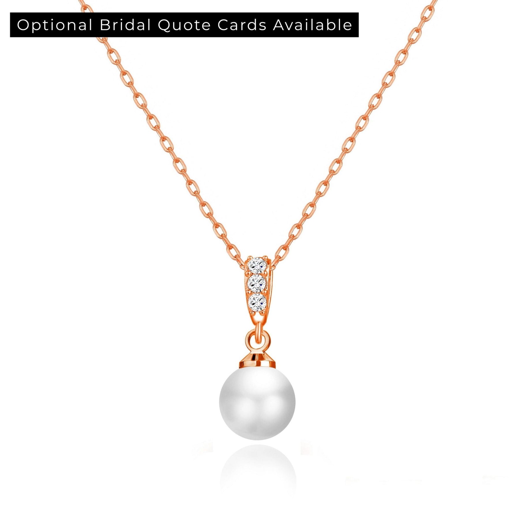 Rose Gold Plated Pearl Drop Bridal Necklace Created with Zircondia® Crystals - Philip Jones Jewellery