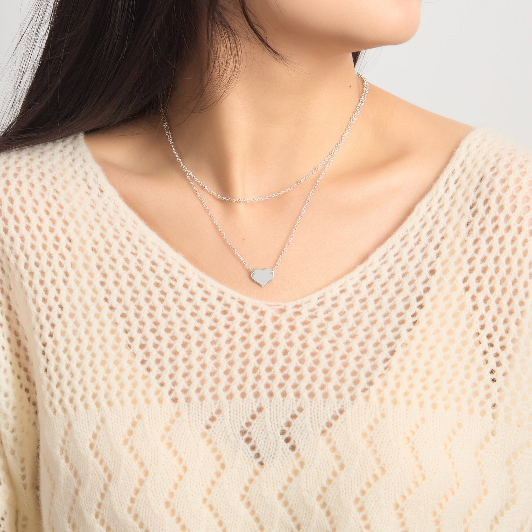 Elevate your jewellery collection with this exquisite Silver Plated Double Layered Heart Necklace from Philip Jones. Crafted from high-polished silver plating over a durable brass alloy base, this piece combines elegance with everyday wearability. The delicate 11mm x 13mm pendant hangs gracefully from a 43cm cable chain with a 5cm extender, offering the perfect fit for any occasion. Hypoallergenic properties make it ideal for sensitive skin, while the lightweight 6.2g design ensures all-day comfort. Presented in a charming gift pouch, it's ready to impress whether you're treating yourself or gifting someone special.