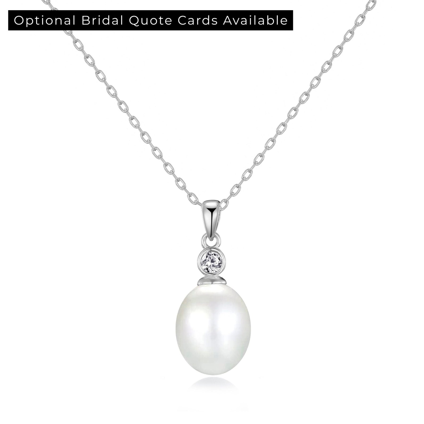 This sterling silver bridal necklace, featuring a 12mm oval shell pearl and sparkling Zirconia® crystals, is perfect for brides and bridesmaids. Hypoallergenic and stamped 925, it includes a 23mm pendant on a 43cm chain with a 5cm extender and lobster claw clasp. Lightweight at 3.1g, it comes beautifully presented in a gift pouch—an elegant accessory for your special wedding day.