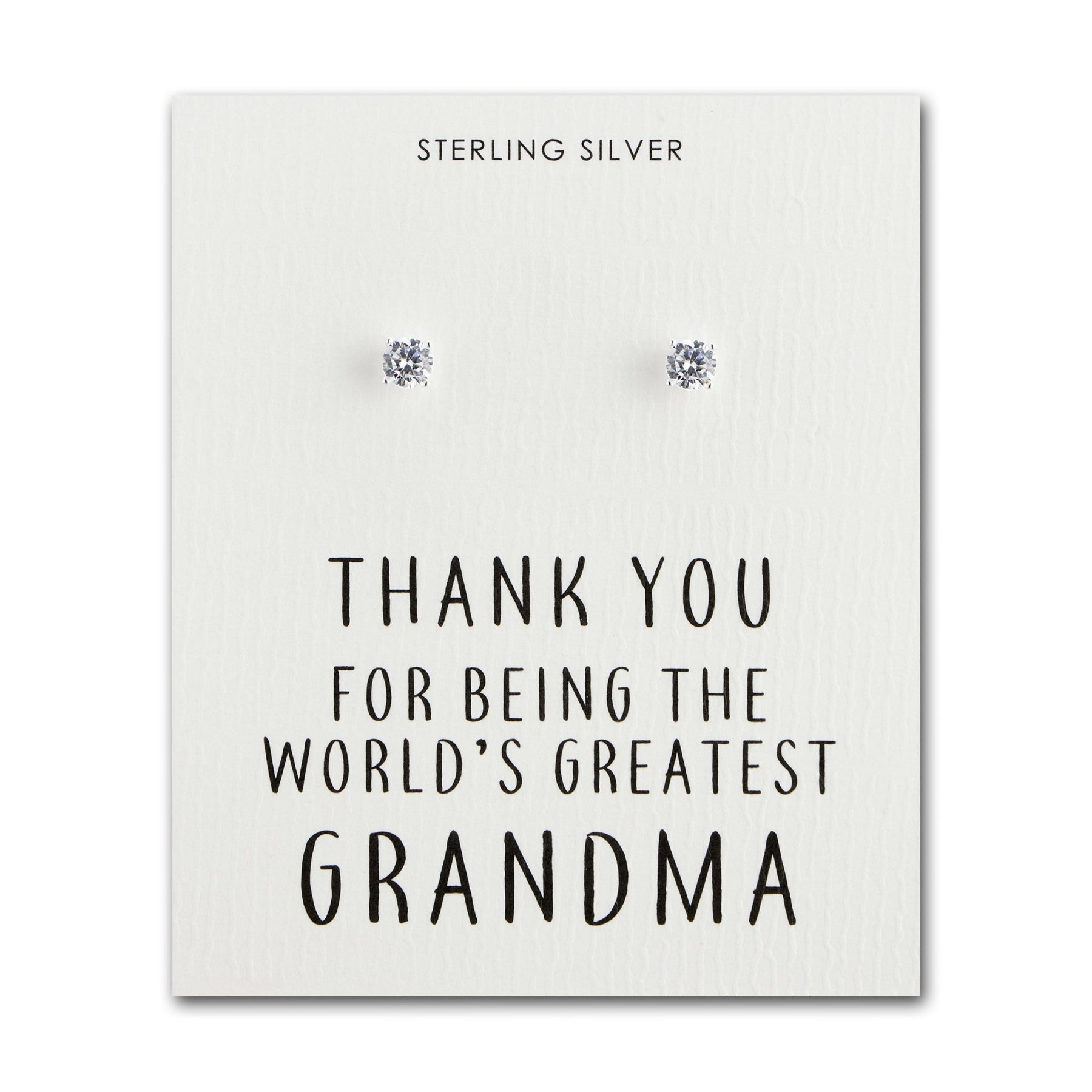 Sterling Silver World's Greatest Grandma Crystal Earrings