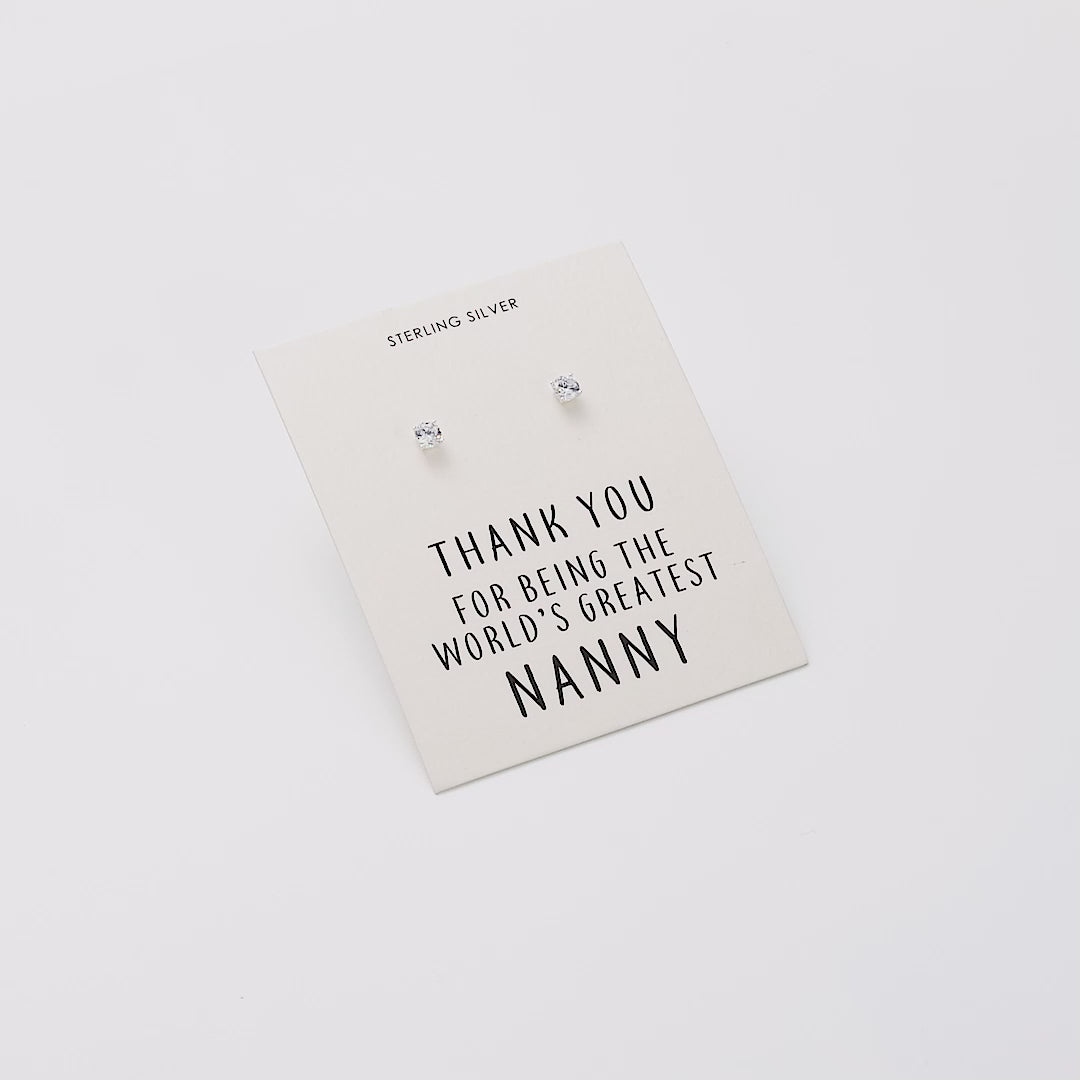 Sterling Silver World's Greatest Nanny Crystal Earrings - Philip Jones Jewellery
