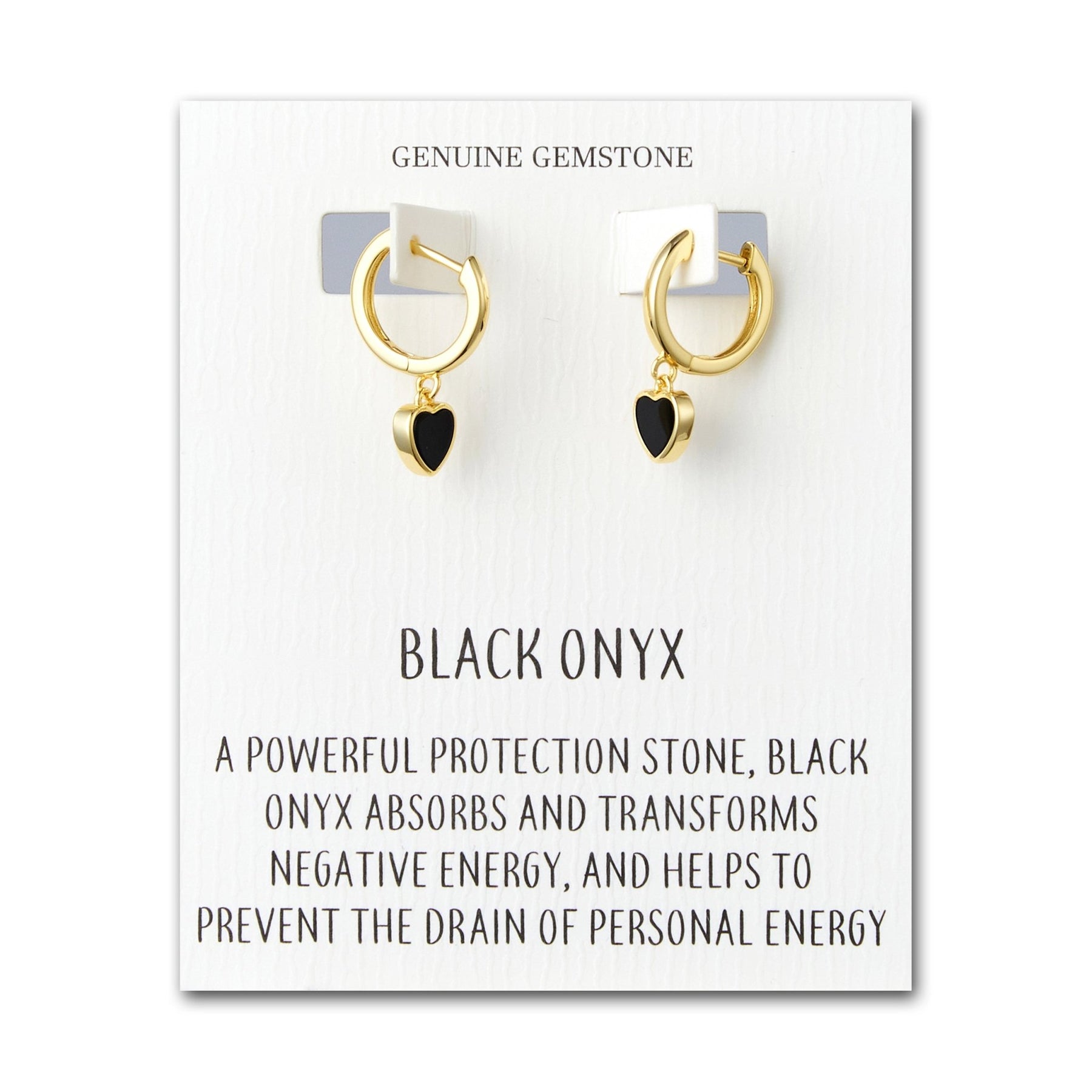 Featuring Black Onyx and 18k gold plating, these Philip Jones earrings offer both stunning style and hypoallergenic properties. The heart-shaped black stones add a touch of elegance to your look, while the huggie closure ensures a secure and comfortable fit. These earrings come in a gift pouch making them the perfect gift for yourself or a loved one.