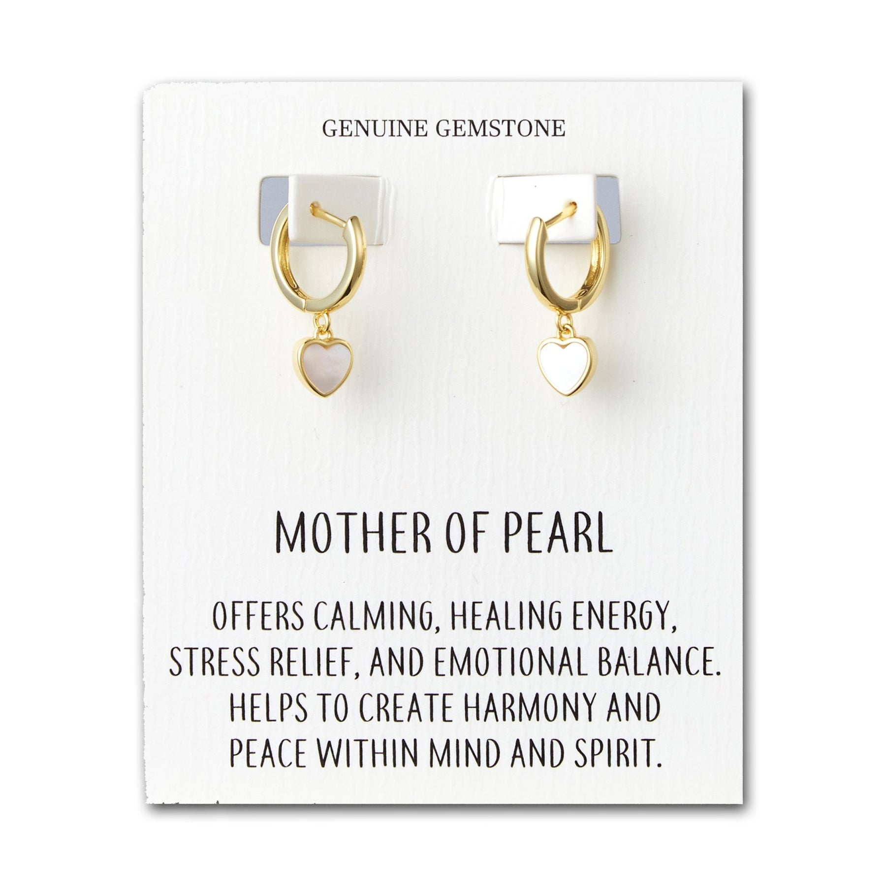 Featuring Mother of Pearl and 18k gold plating, these Philip Jones earrings offer both stunning style and hypoallergenic properties. The heart-shaped Mother of Pearl stones add a touch of elegance to your look, while the huggie closure ensures a secure and comfortable fit. These earrings come in a gift pouch making them the perfect gift for yourself or a loved one.