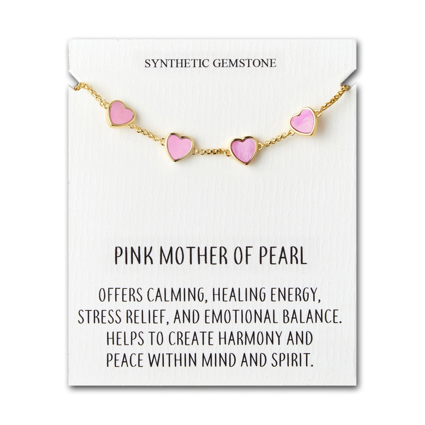 This stunning bracelet features pink gemstones and a 18k gold plated brass alloy base, ensuring both beauty and durability. Pink Mother of Pearl heart-shaped stones add a touch of elegance, while the adjustable slider closure allows for a perfect fit. The bracelet comes in a stylish gift pouch, making it the ideal present for loved ones.