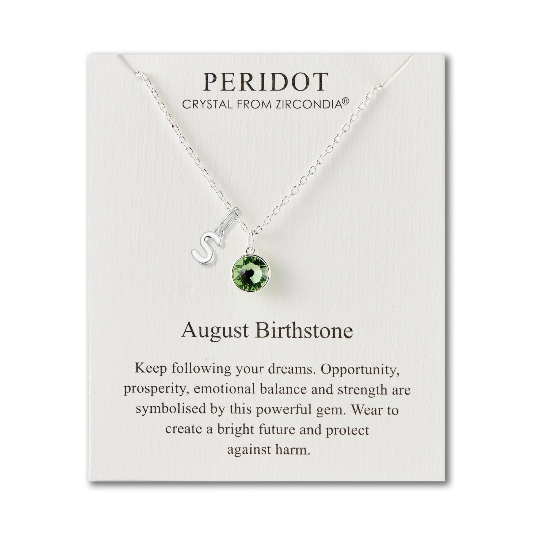 Customisable August (Peridot) Birthstone Necklace with Choice of Initial Charms (A-Z)