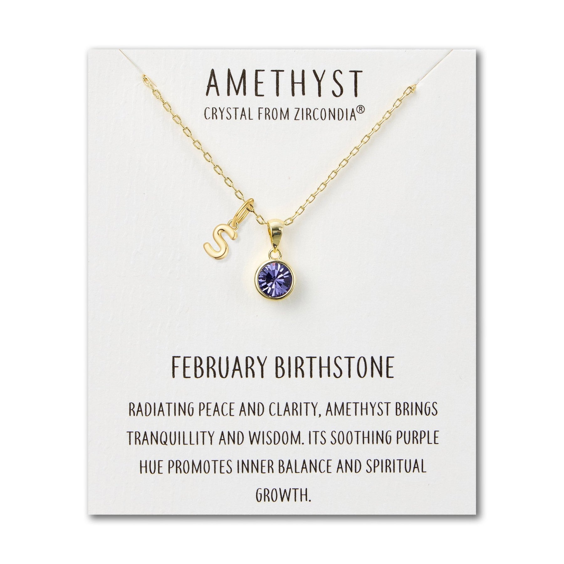 Customisable Gold Plated February (Amethyst) Birthstone Necklace with Choice of Initial Charms (A-Z)