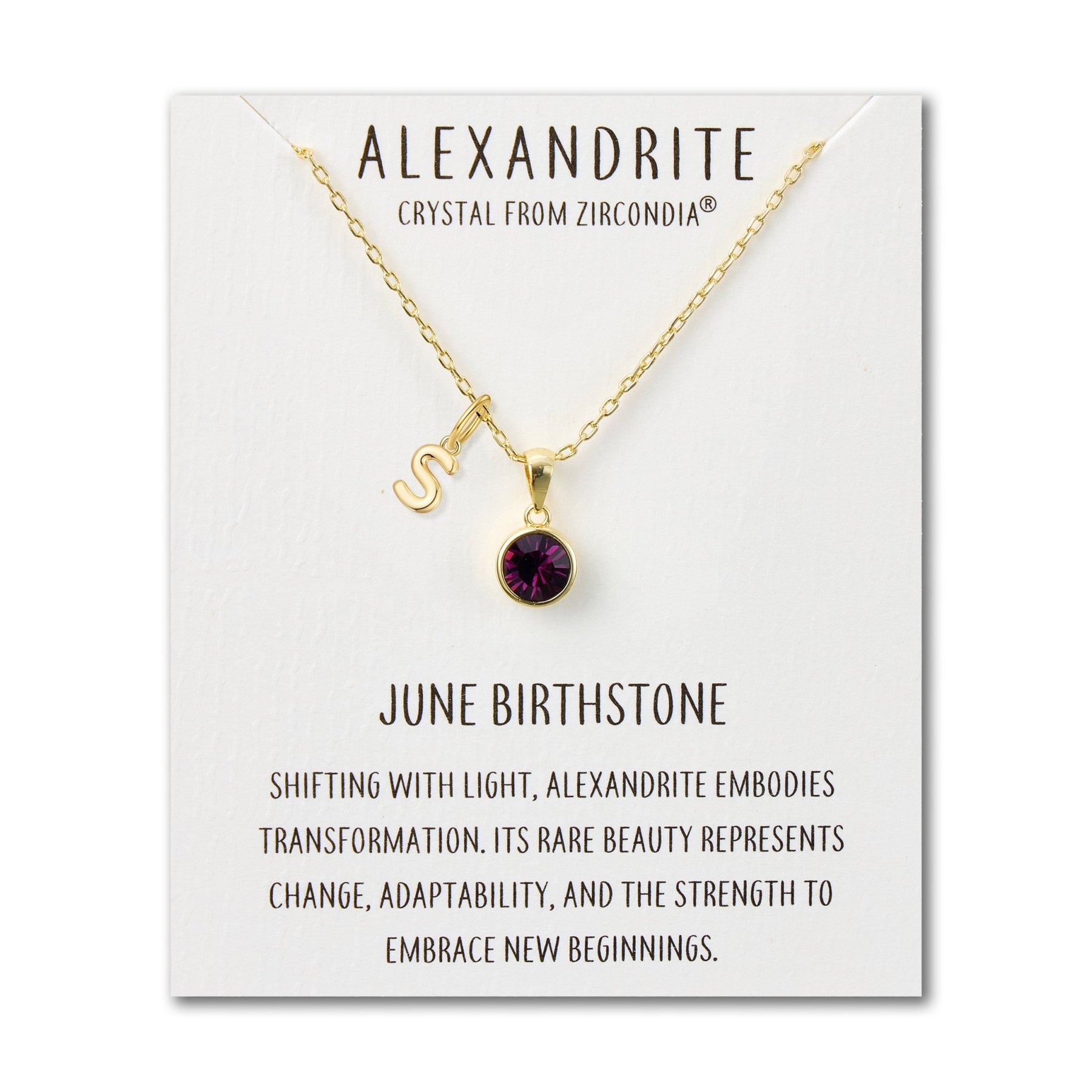 Customisable Gold Plated June (Alexandrite) Birthstone Necklace with Choice of Initial Charms (A-Z)