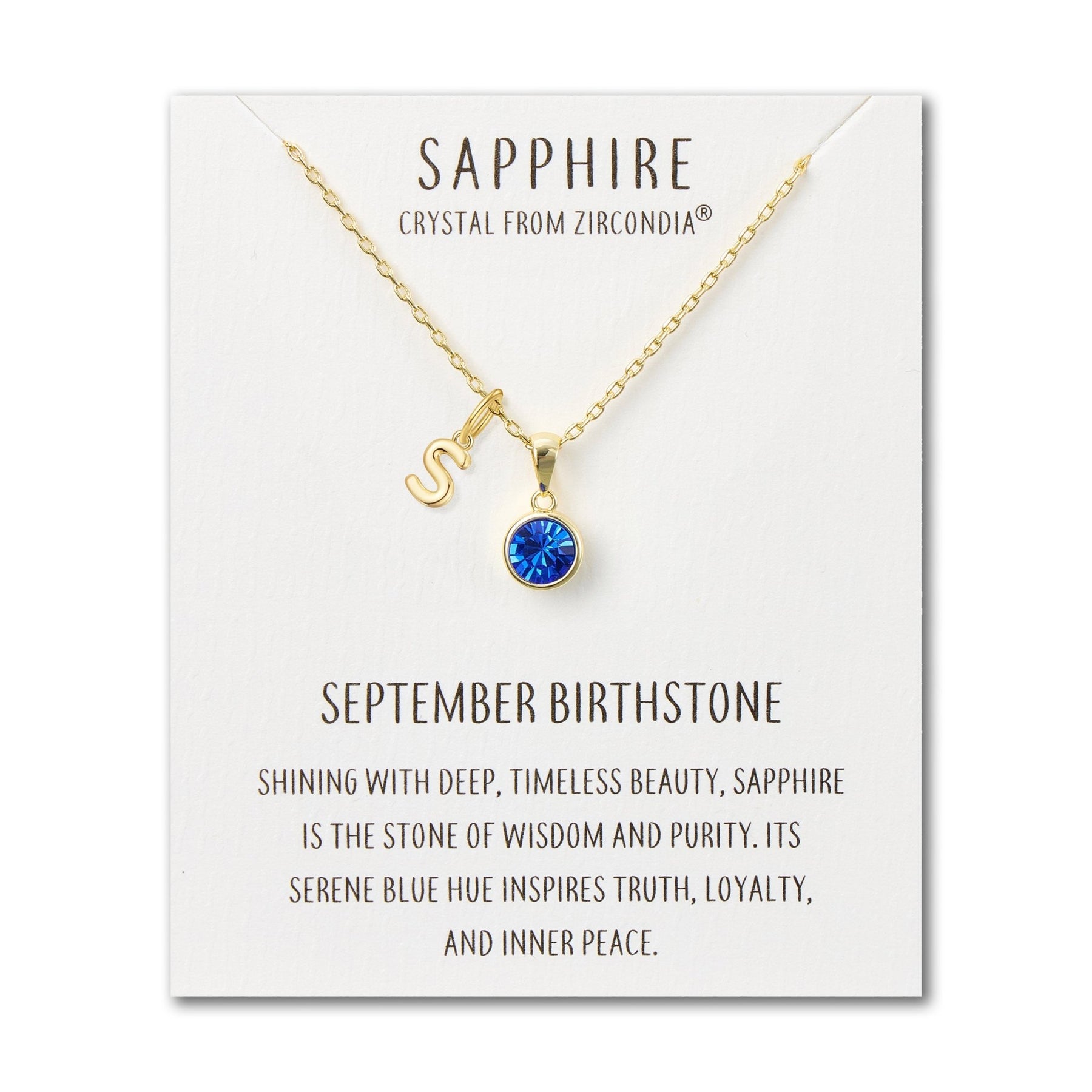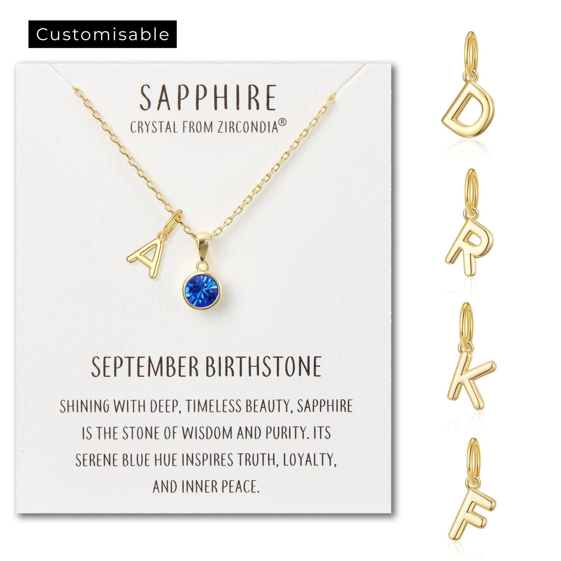 Customisable Gold Plated September (Sapphire) Birthstone Necklace with Choice of Initial Charms (A-Z)