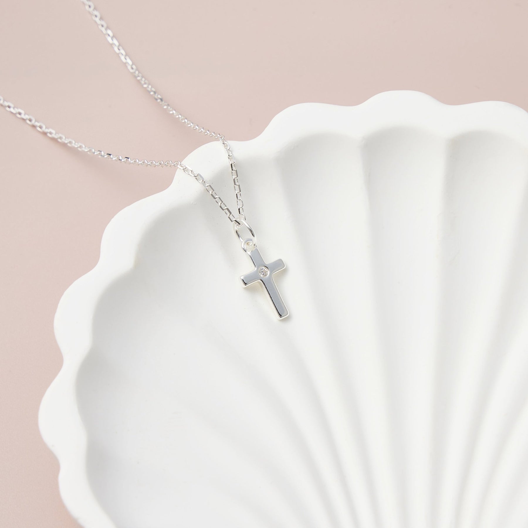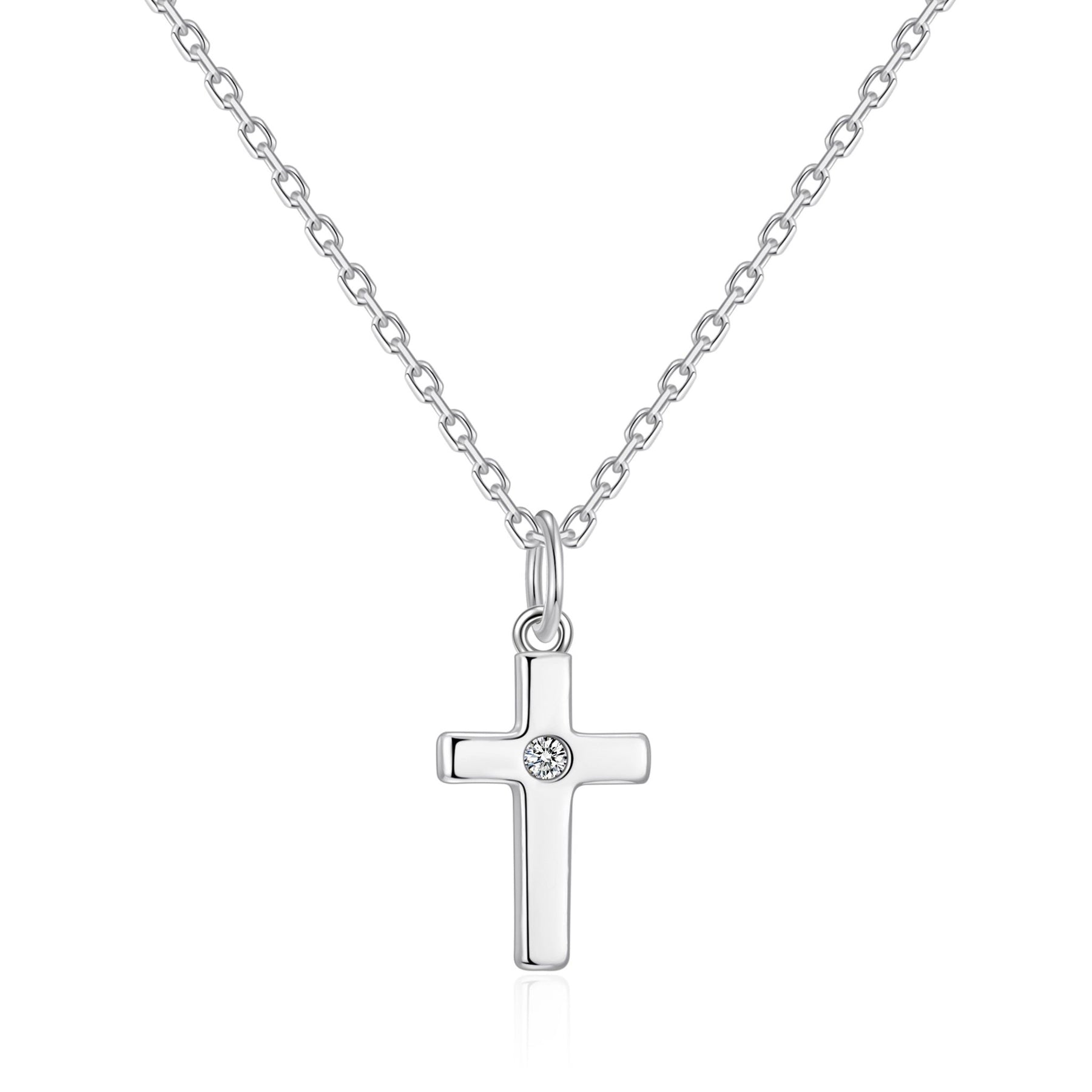 Kids Sterling Silver Cross Necklace Created with Zircondia® Crystals - Philip Jones Jewellery