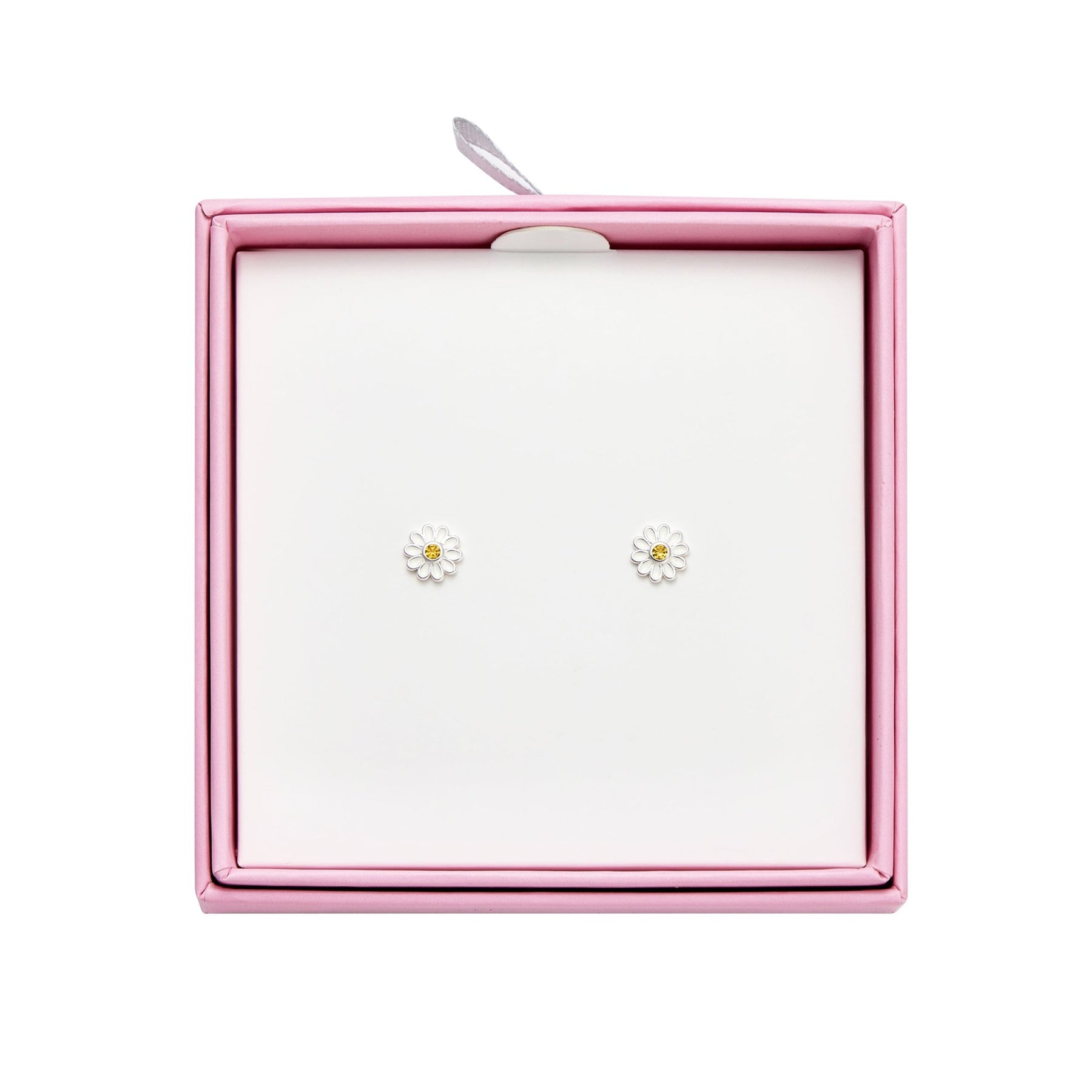 These kids' daisy stud earrings are crafted from 925 sterling silver, ensuring a hypoallergenic and durable design. Featuring clear, round Zircondia® crystals measuring 1mm, each 7mm earring is lightweight and fastens securely with butterfly backs. Perfectly sized and beautifully presented in a gift box, they make an ideal, thoughtful gift for young ones who appreciate timeless elegance.