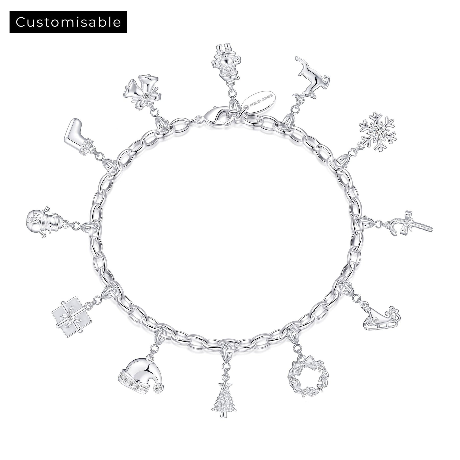 Silver Plated Link Chain Bracelet with Option of Christmas Charms